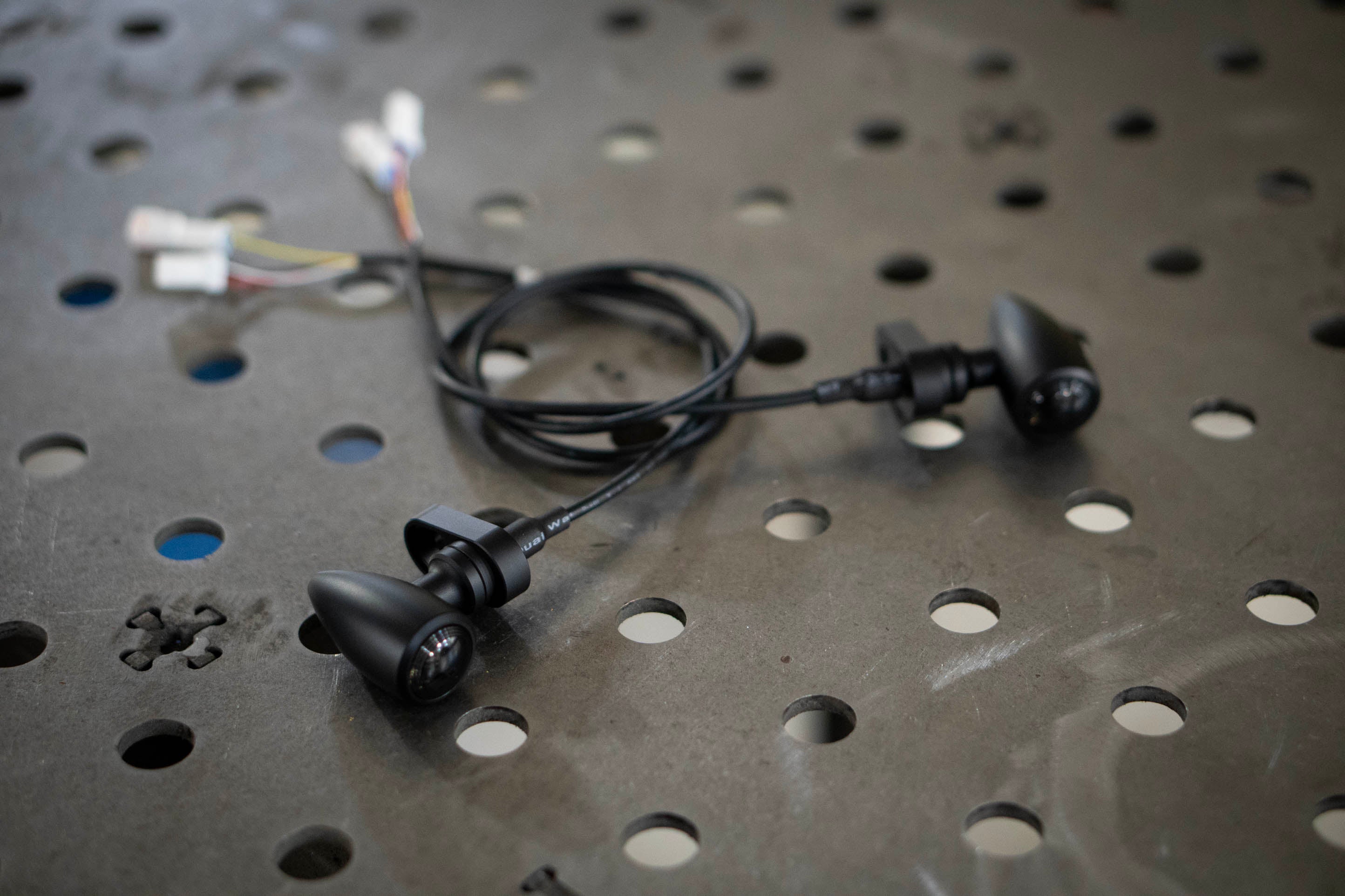 Turn signals come fully assembled on our machined low-profile adapter plates with OEM connectors, ready to install