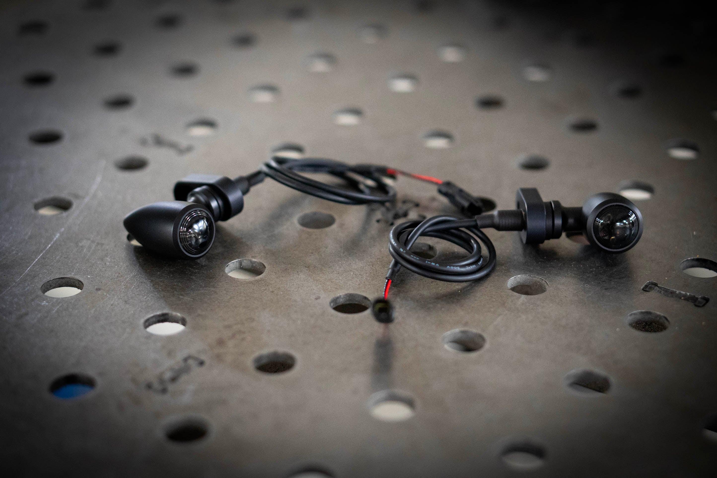 Turn signals come fully assembled on our machined low-profile adapter plates with OEM connectors, ready to install using the factory rear wiring harness.