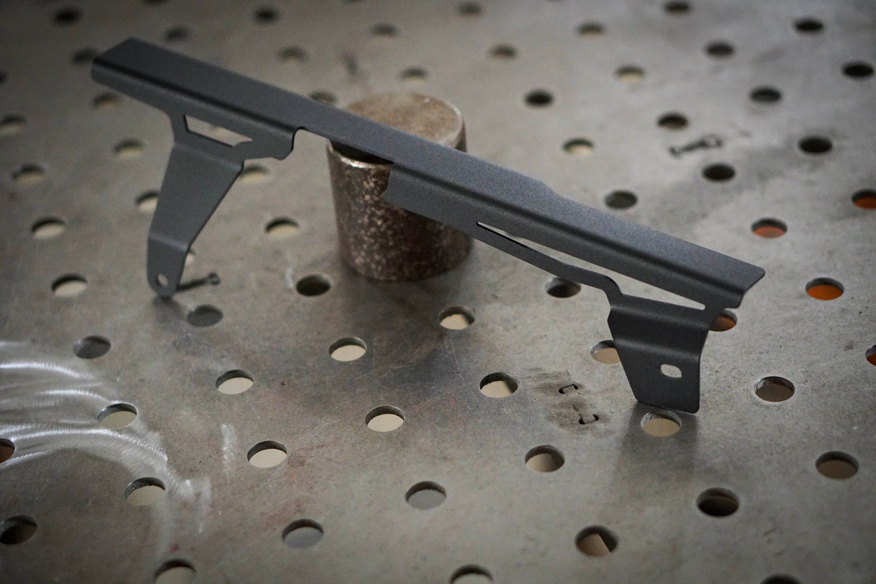 Our chain guards are CNC laser cut & bent from Stainless Steel and finished off in a durable black powder coat. Our unique design offers protection in a stylish package.